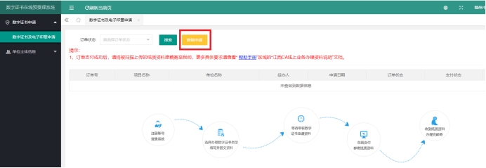 一、在线新办江西CA数字证书流程