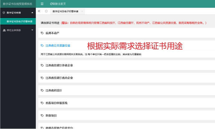 注意:选错证书项目将导致证书无法使用,请明确用途后谨慎选择!!!