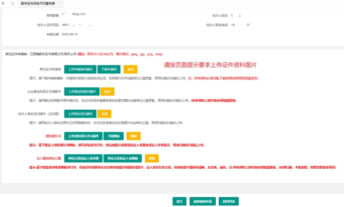 (三)下载模板、法人核验、上传证件、提交申请